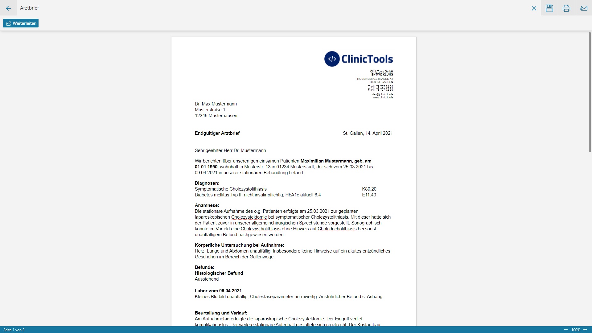 Als HTML5-basierte Applikation ist „ClinicTools Documents“ in fast jede Applikation integrierbar & kann Daten aus vielen weiteren Systemen abgreifen. Es ermöglicht z.B. Befunde aus einem Radiologischen System o. ä. direkt in Ihre Dokumente zu integrieren, ohne dass Daten im Voraus über komplexe Schnittstellen übertragen werden müssen. Es wird nur noch ein System zur Generierung von patienten-/fallbezogenen Dokumenten benötigt, Anpassungen werden schneller & einfacher umsetzbar.